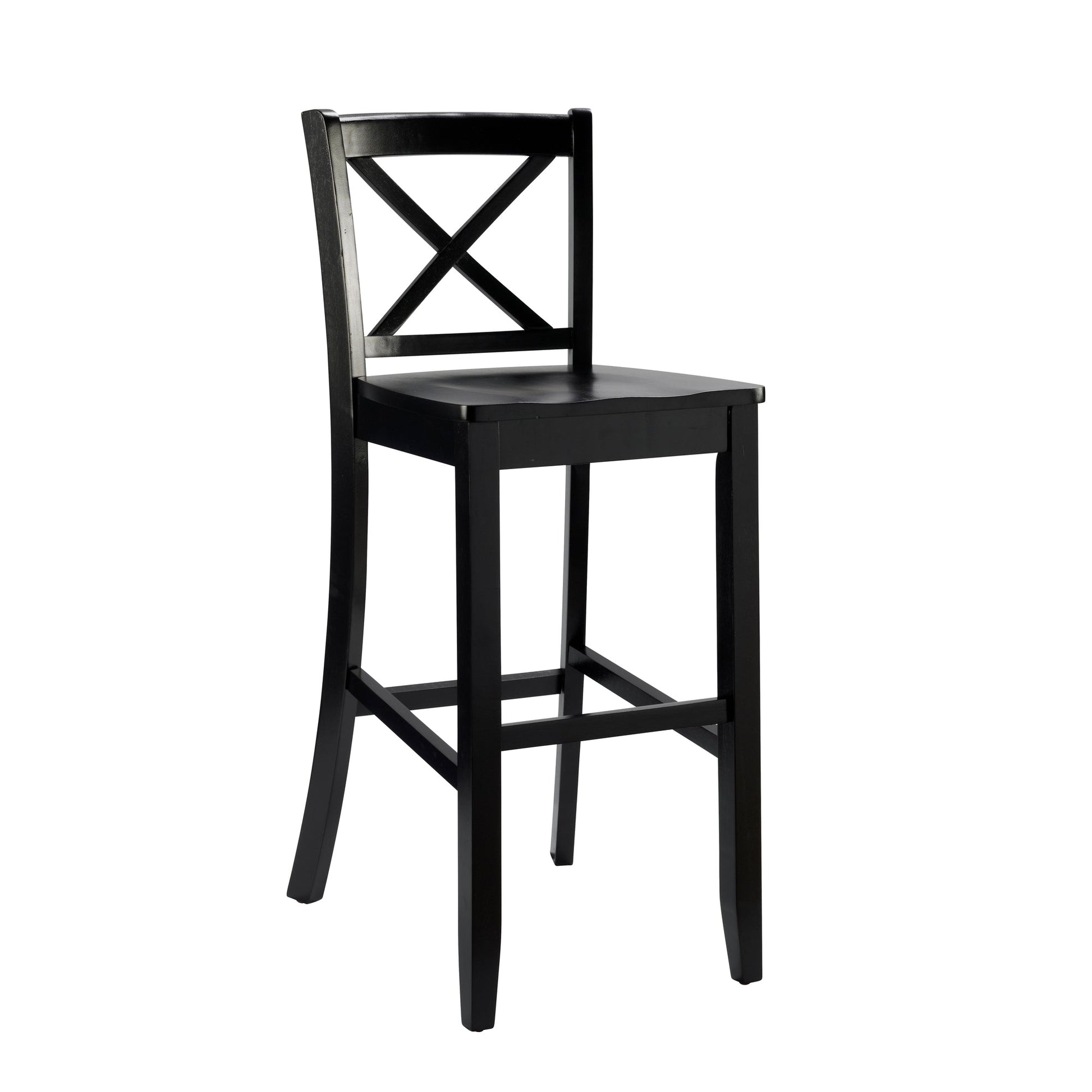 The elegance and unique style of this Black X Back Stool will carry throughout your kitchen, dining, or home pub area. Finished in rich Espresso. The clean lines and solid construction ensure that this stool is durable enough for a busy kitchen, yet elegant enough for a more formal setting. 30" seat height. 275 pound weight limit.