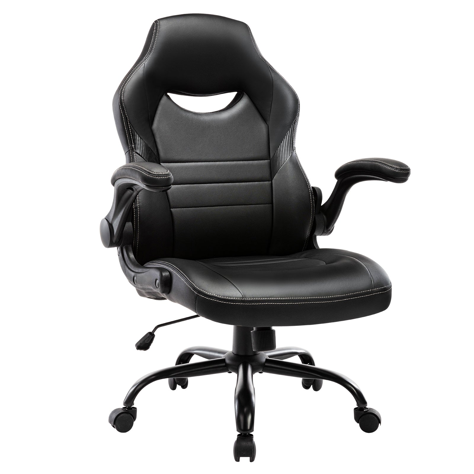 Flip-Up Arms Office Gaming Chair, Ergonomic Swivel Computer Racing Game Chair Adjustable Desk Task Chair (Black)