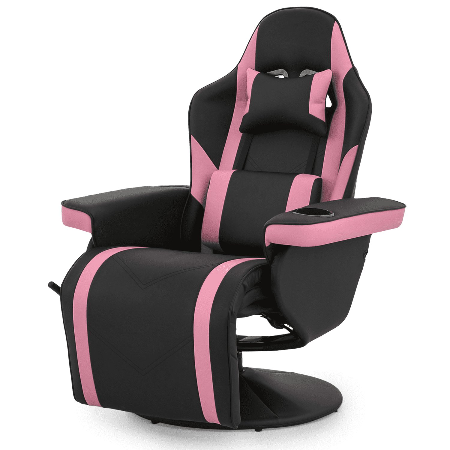 Magshion Gaming Recliner Chair Racing Style Ergonomic High Back Swivel PU Leather Gaming Chair Recliner with Adjustable Backrest, Footrest and Lumbar Support, Pink