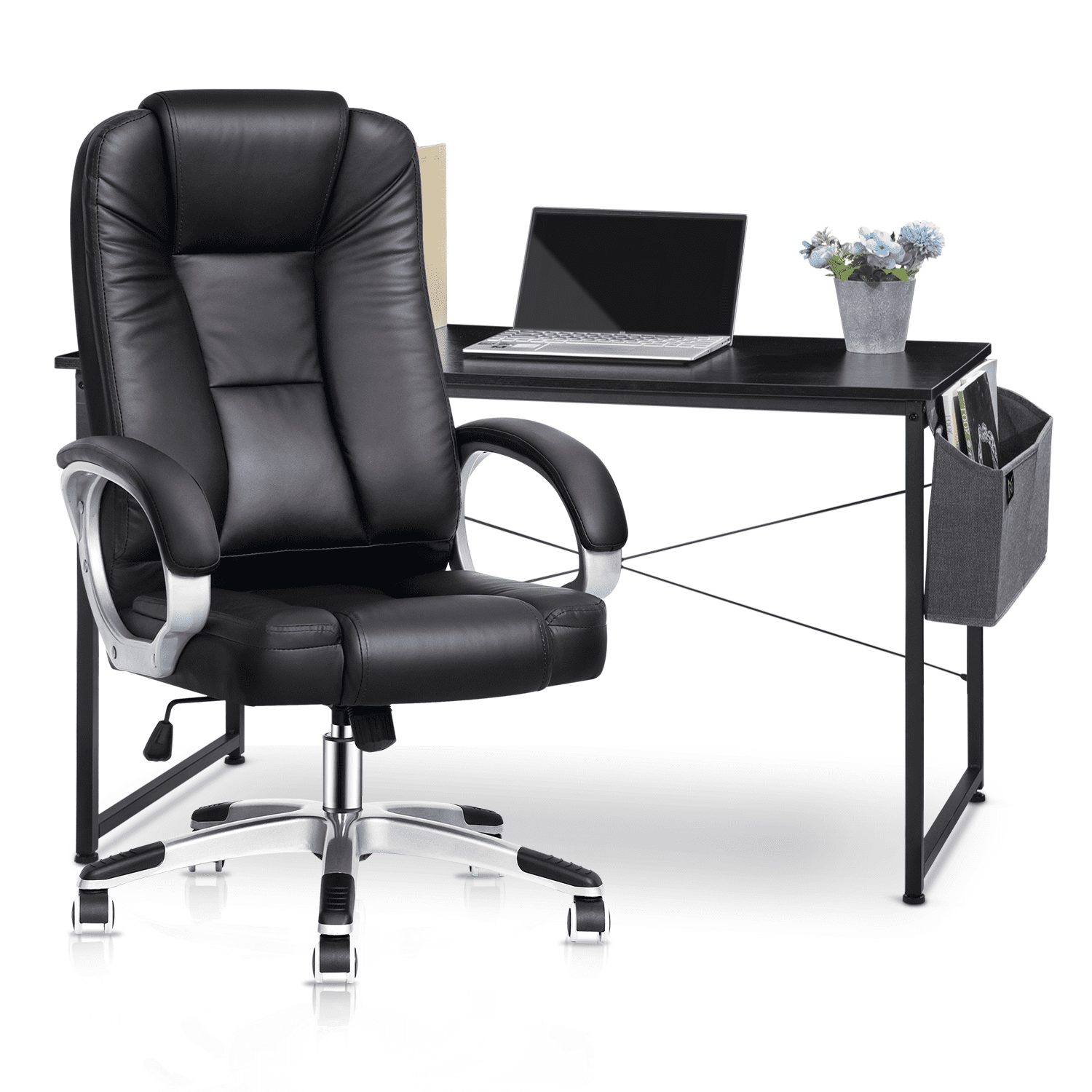 MoNiBloom Home Office Modern Desk & Chair Set, Rolling High Back Leather Chair and Laptop Table with Storage Bag, Black