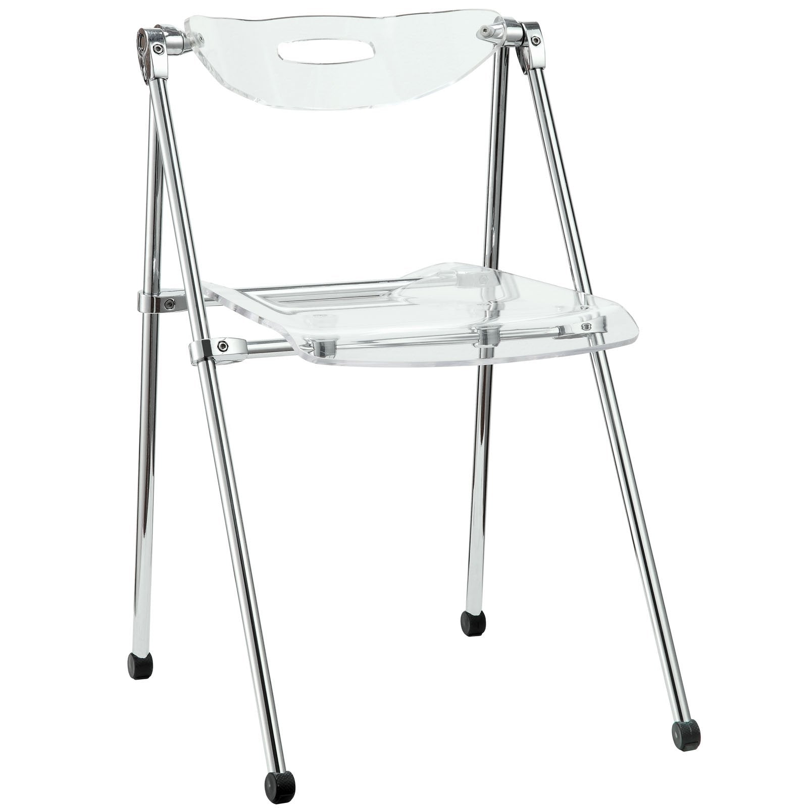 A combination of convenience and comfort, the Telescope Chair offers many desirable features. The back tilts to support you, even when you are reclining. For storage, the chair's telescoping legs allow you to effortlessly fold the chair down to a compact storage size. Ultra modern and attractive, these chairs are not only a smart choice, but they are also a stylish one as well. Set Includes: One - Telescoping Chair Durable Acrylic Seat and Back Chrome Frame Folds for Storage Weight Capacity: 265 Pounds Overall Product Dimensions: 19"L x 19"W x 30"H Seat Dimensions: 18.5"L x 15.5"W x 18.5"H Folded Dimensions: 3.5"L x 19"W x 42"H Chrome, Acrylic
